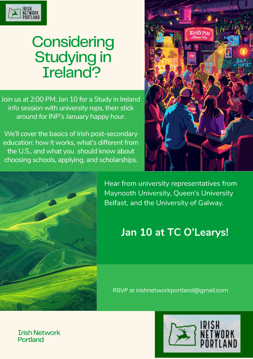 REMINDER - On Jan 10th at 2pm we invite parents of high school students to join us at T.C. O'Leary's for an informative and conversational presentation on earning an undergraduate degree in Ireland.